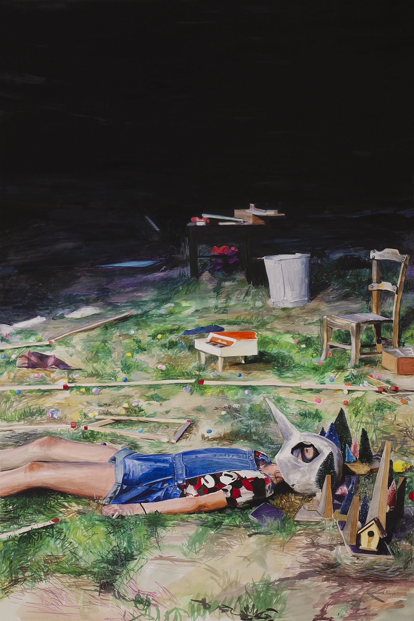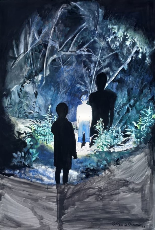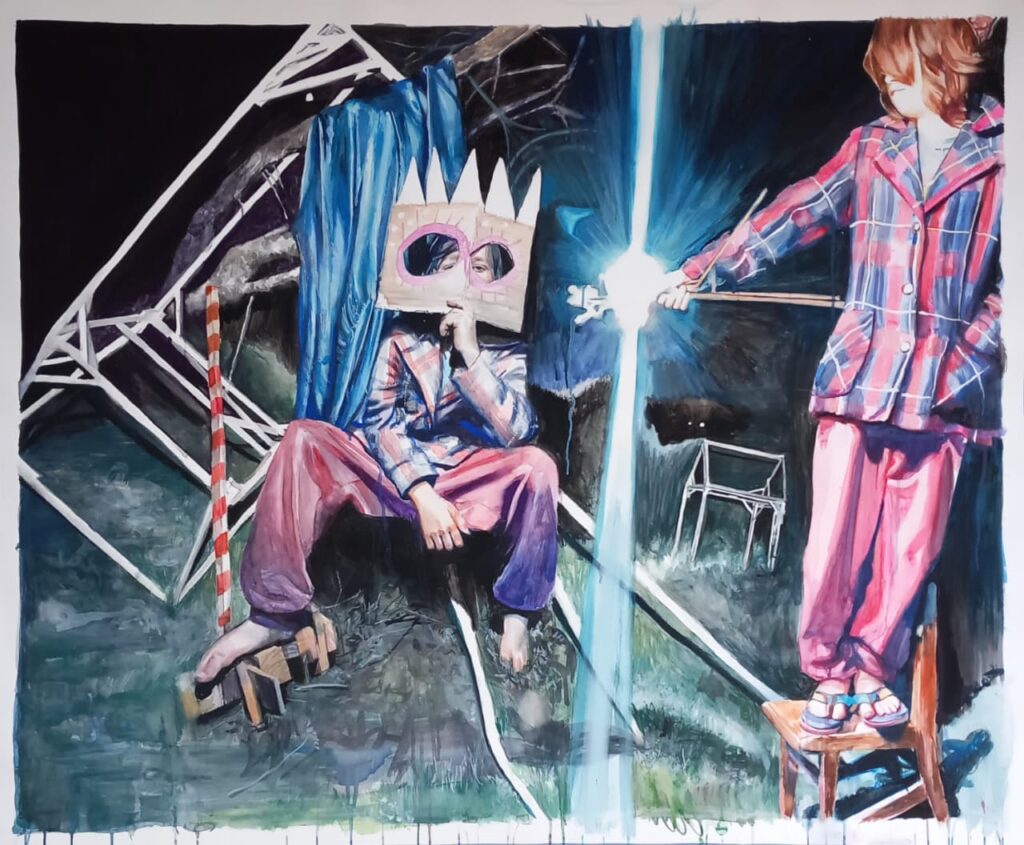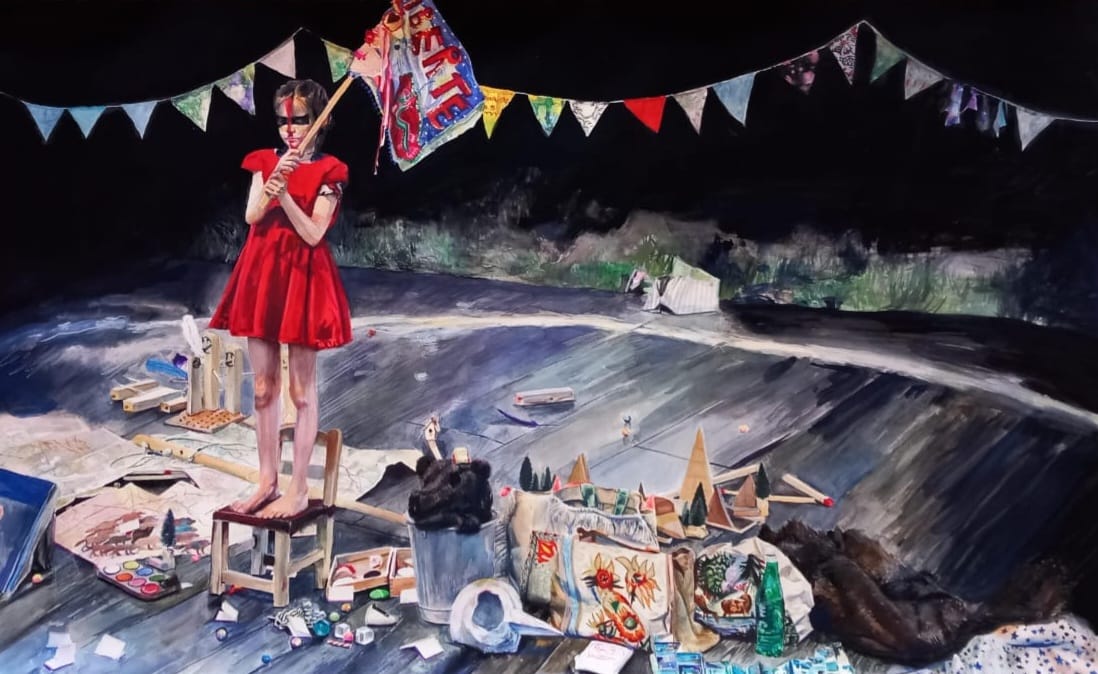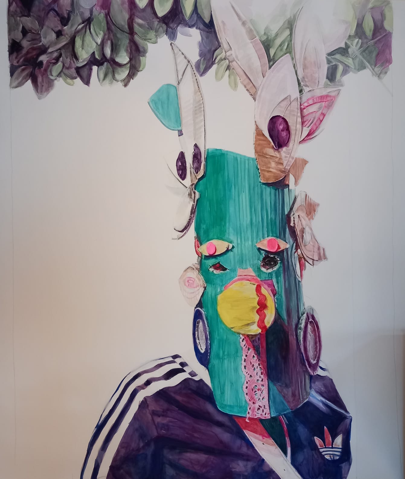 Pom, pom, pom, gouache y acuarela sobre papel de algodón Arches 300gr, 110x70cm, 2025.