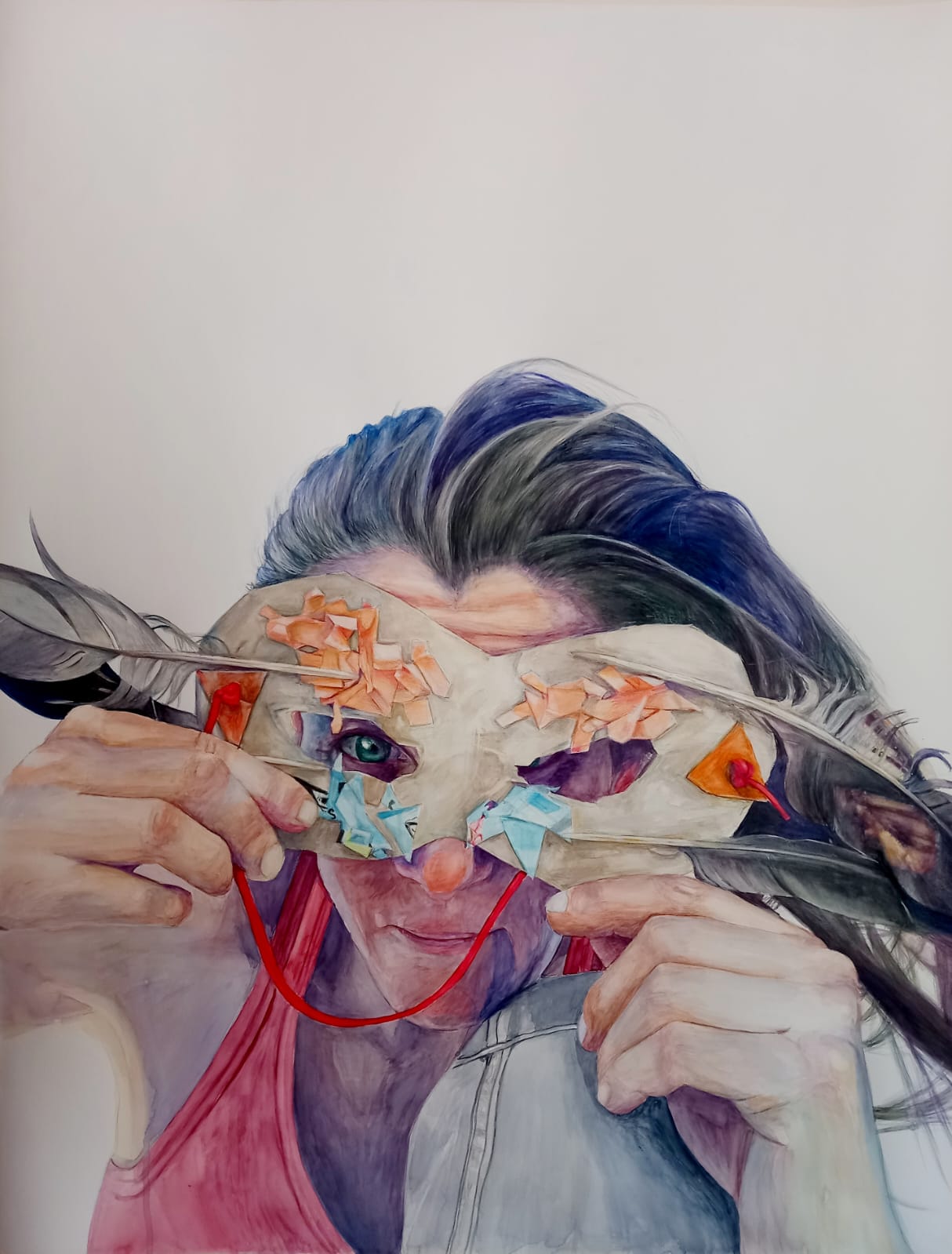 Brazos crusados. Gouache. acuarela y lapiz de colores sobre papel de algodon arches 300gr. 75X55cm. 2023
