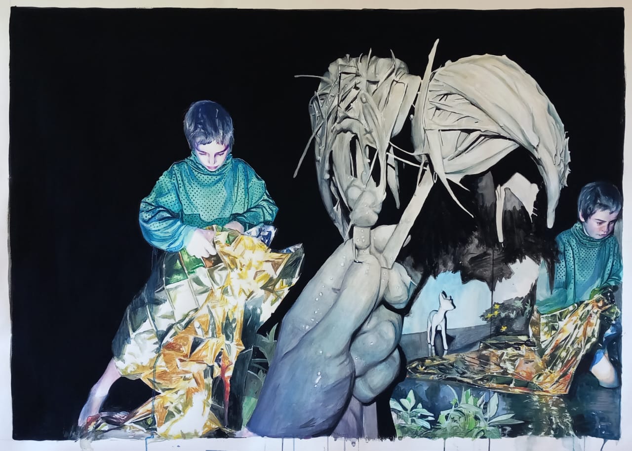 El mago de Oz o le contrevent, acuarela y gouache sobre papel Montval 300gr, 153 x124 cm, 2026